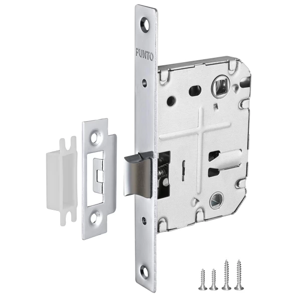 Дверные защелки Punto соответствуют высшему 4 классу надежности (250 000 циклов открывания/закрывания). Корпус изготовлен из высокопрочной стали. Лицевые элементы имеют надежное гальваническое покрытие. Комплектация: ответная планка, декоративная заглушка и крепежная фурнитура в цвет изделия.