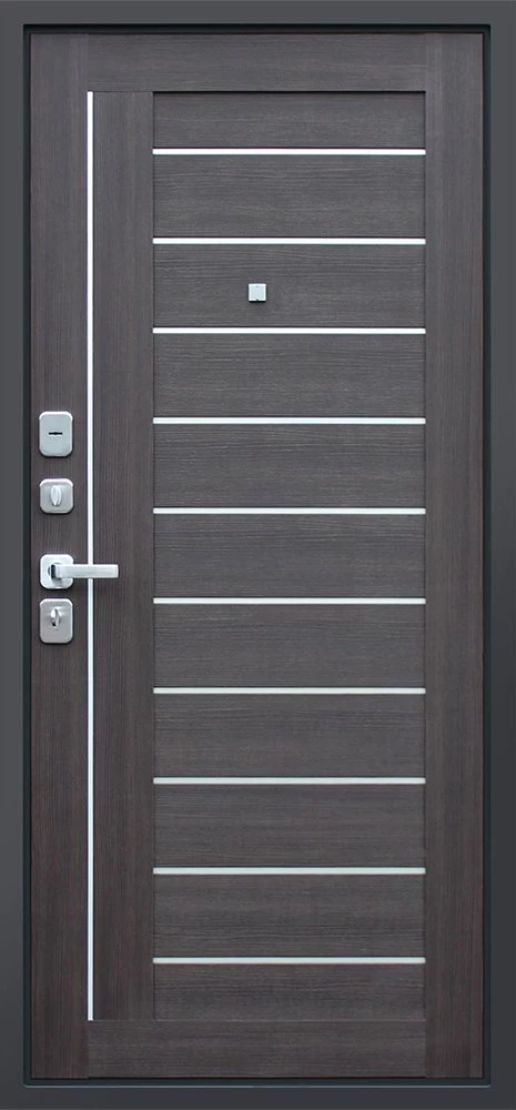 Надежная входная Дверь Дуэт орех рифленый премиум класса по цене 47 670 руб. Большая толщина стали защитит от проникновения в ваш дом, квартиру или коттедж. Используется очень качественная фурнитура: замки, цилиндры, ручки, защелки. Покрытие и отделка двери изготовлено под внимательным контролем производителя. Дверь имеет долгий срок службы и гарантию.
