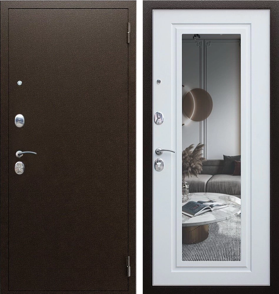 Надежная входная Дверь Комфорт с зеркалом премиум класса по цене 31 170 руб. Большая толщина стали защитит от проникновения в ваш дом, квартиру или коттедж. Используется очень качественная фурнитура: замки, цилиндры, ручки, защелки. Покрытие и отделка двери изготовлено под внимательным контролем производителя. Дверь имеет долгий срок службы и гарантию.