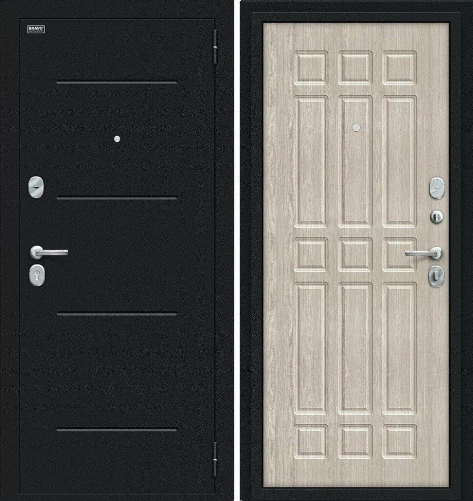 Надежная входная Дверь Браво Мило Букле черное/Cappuccino Veralinga премиум класса по цене 32 420 руб. Большая толщина стали защитит от проникновения в ваш дом, квартиру или коттедж. Используется очень качественная фурнитура: замки, цилиндры, ручки, защелки. Покрытие и отделка двери изготовлено под внимательным контролем производителя. Дверь имеет долгий срок службы и гарантию.