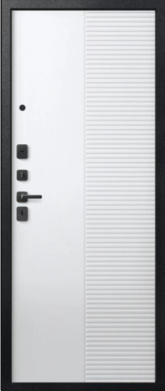 Надежная входная Дверь V-18 Черный муар + Кашемир графит - Кашемир Белый премиум класса по цене 49 420 руб. Большая толщина стали защитит от проникновения в ваш дом, квартиру или коттедж. Используется очень качественная фурнитура: замки, цилиндры, ручки, защелки. Покрытие и отделка двери изготовлено под внимательным контролем производителя. Дверь имеет долгий срок службы и гарантию.